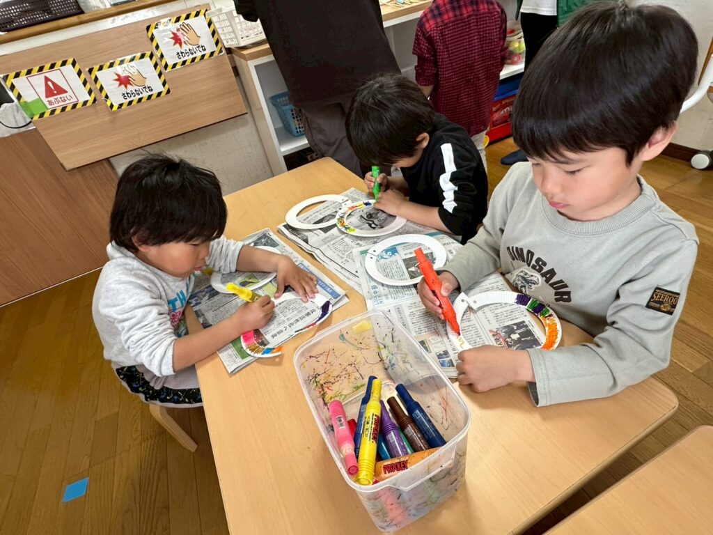 かもめ組…制作(かざぐるま)、かざぐるまで遊ぼう!(本郷第三公園)、ブロック遊び、積み木遊び、黒ひげ危機一髪、椅子とりゲーム
