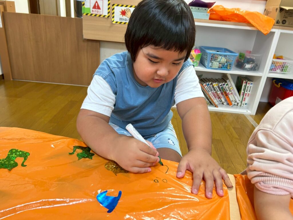「お絵描きもしたい!」というお友達のナイスアイディア👍も取り入れてマーカーでカラフルにしたよ♬