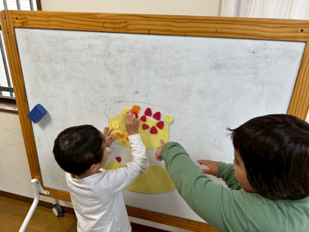かもめ組…ロング散歩(秋を見つけよう)・折り紙/ブロック/積み木遊び・誕生日会