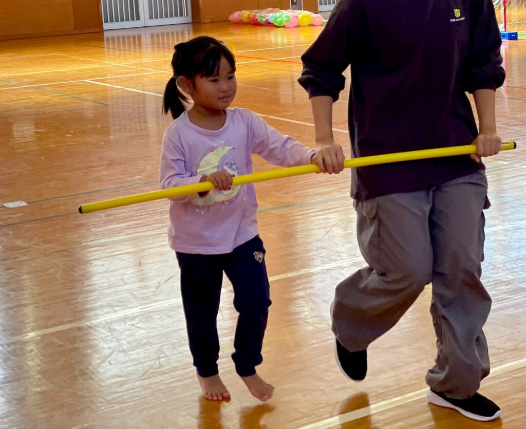 体育館でサーキット・棒リレー・四点走リレーをしたよ!