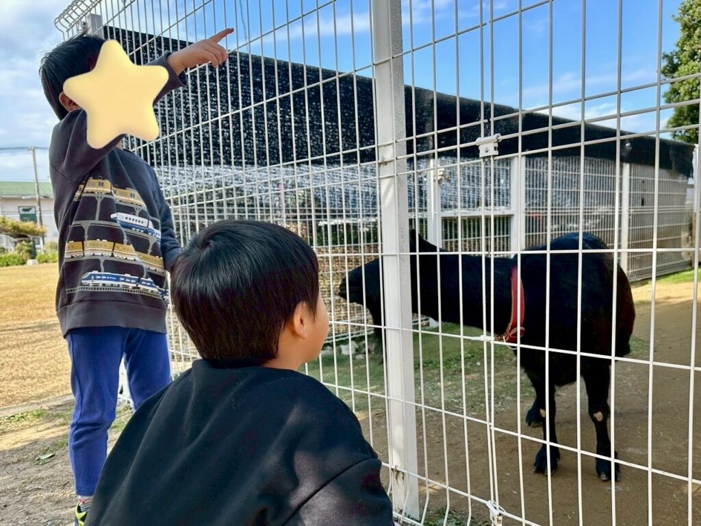 かもめ組さんはにこっとにお散歩に行ってヤギと鯉を見てきたよ。お昼ご飯の時、「こんなに大きい鯉がいたんだよ!!」