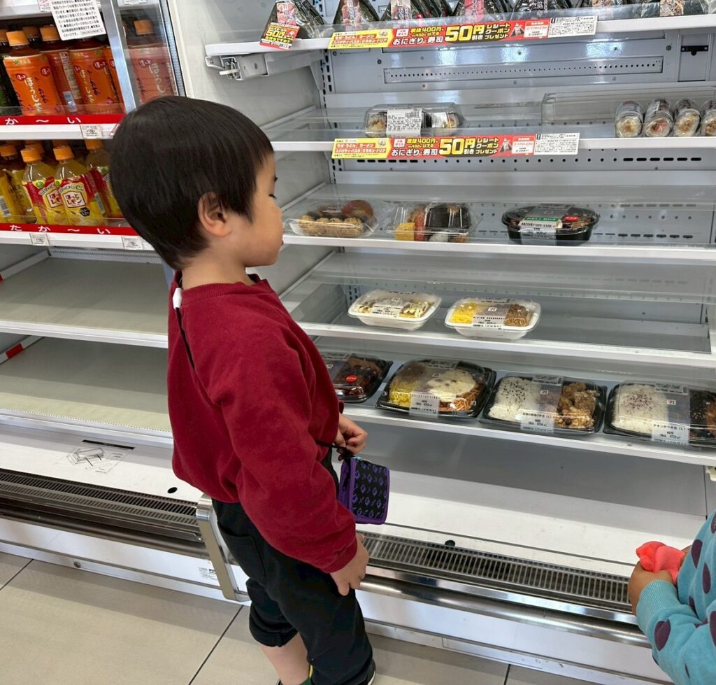 セブンイレブンへお昼ご飯を買いに行ったよ!”おいしそう・・・”と迷ったけど、自分たちで選んでお金を払ったよ(^^♪