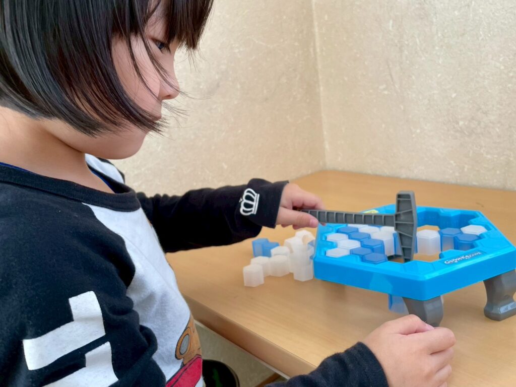 30分間の集団学習はサーキット!!型はめ・くじ引き・ボールキャッチ!!引き当てたくじには、アンパンマンのキャラクターがひらがなとカタカナで書いてあったけど、さすがかもめさん!読めている子がたくさんいたね♬個別学習では、パズルで線路を作ったり、お手本通りにブロックを積んだり、30分間集中して取り組むことができていたね(^▽^)/とてもよく頑張りました(^^♪