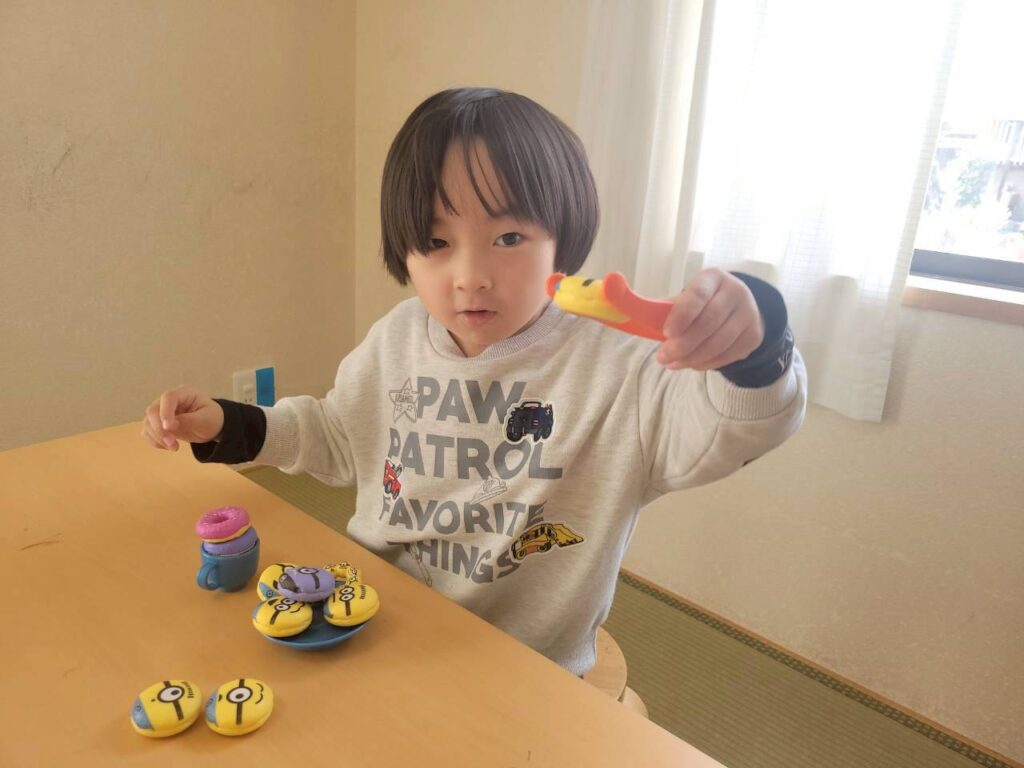 トングで上手にドーナツを挟んだり、積み木をお手本と同じように積んだりすることができたね!(^▽^)/