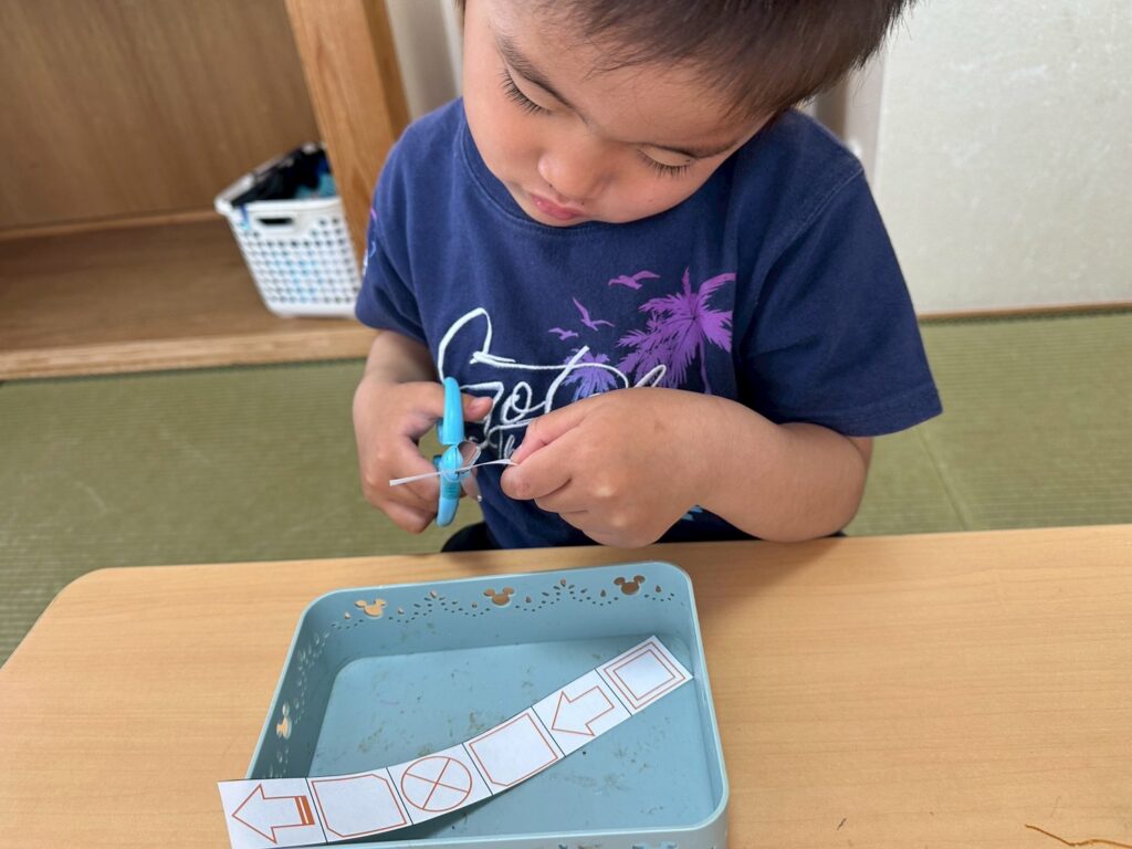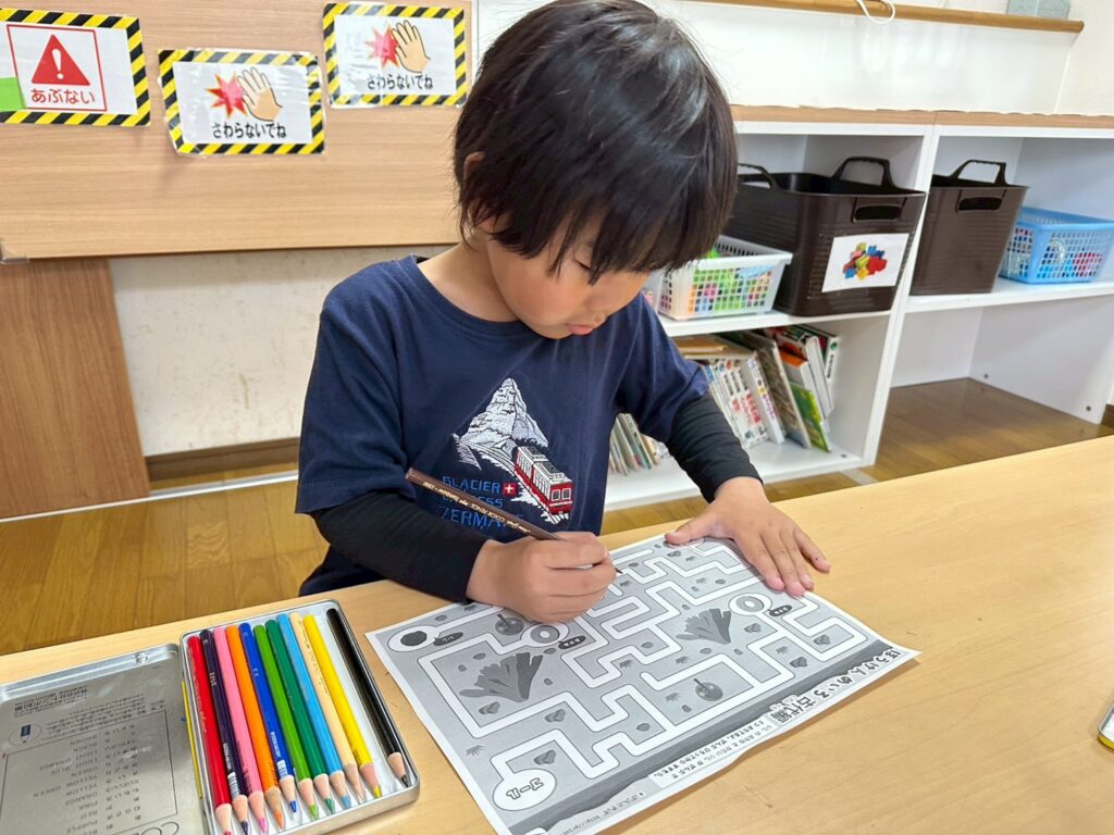 かもめ組さんは、点つなぎ、迷路、SST、つばめ組さんは図形合わせでのりやハサミを使ってロング朝の会を頑張ったね(^^♪