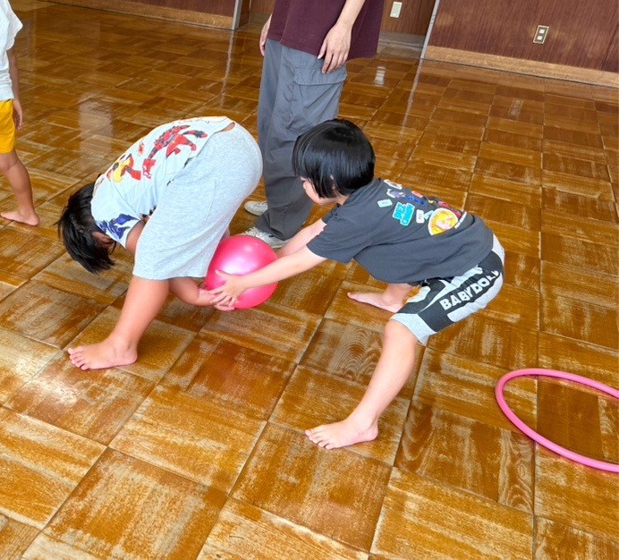ボール送りもそーっと落とさずお友だちにボールを渡すことができたよ!(^▽^)/